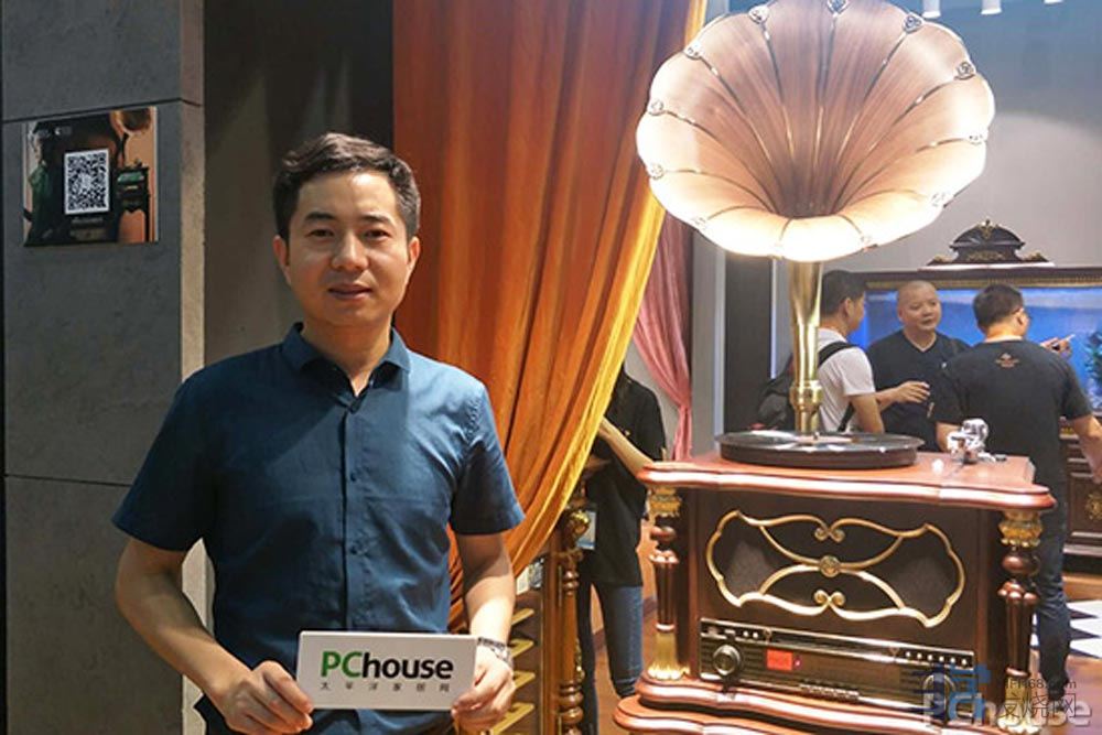 【刘总】:梵尼诗在此次建博会上,带来了2018年新推出的HiFi留声机,除了延续了梵尼诗一贯的高品质设计与工艺,在音质上达到更高的层次,聆听者的体验效果非常好。第二个就是面对年轻时尚人群,全新设计的潮流轻奢风格产品,这主要是应对目前市场的消费趋势。同时展会还展出了梵尼诗其他产品,包括古典壁炉、古典红酒柜、艺术古董钟,实木艺术鱼缸,打造高端优雅的品质生活。