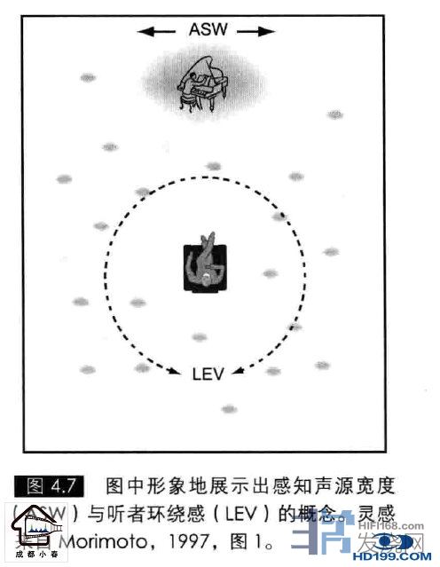 一些研究表明,音乐厅中令人愉悦的声音体验与反射声的入射角和舞台上直达声的入射角之间的关系有关,尤其是来自侧向的反射声能够增强昕音者的“空间感”体验空间感被公认有两个要素:感知声源宽度和听者环绕感例如“当一个管弦乐队在大小合适的厅堂里演奏一个强音时,观众能够听到从侧墙面甚至天花板传过来的强大的反射声能量,从而体验到音乐充满了整个大厅的感觉。