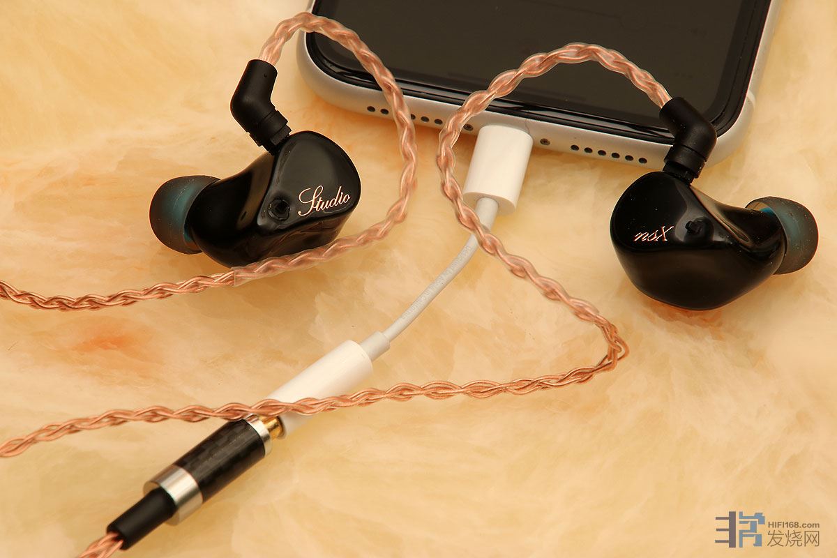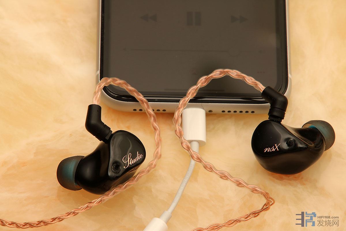 搭配的是原配的3.5mm 6N单晶铜耳机线,苹果不能直接插3.5mm的耳机了,要经过一个转换插。