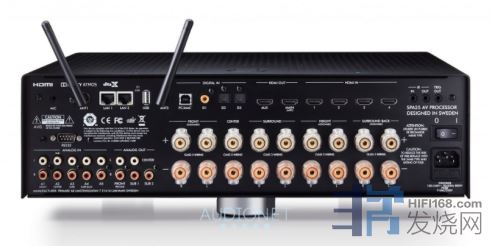 原厂透露的有限资料,本机的额定功率每声道为100瓦,请您注意这是实实在在的标示,在9声道「同时」输出的状态下(all channels driven、不是大多数环绕放大器标示的1channel driven)每声道都能到100瓦,推⼒强不强玩家们是可以期待的。