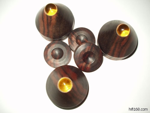 55mm黑檀木黑胶镇.中间白色轴套由特富龙材料镶嵌.经试听,声音厚暖度有约30%的明显提升.130元/个.