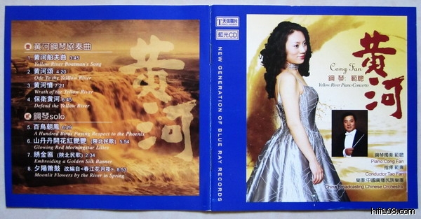 首先听“天弦唱片”出版的、中国当代青年指挥家范熹指挥中国广播民族乐团,其妹范聪女士钢琴演奏的“黄河”钢协。中央电视台的著名录音师李小沛录音,录音地点是央视480平方米录音棚。音效相当不错,最大特点是由交响乐器协奏改为民族乐器协奏,有耳目一新之感。但范聪女士的演奏中规中举,不知是触键力度不够还是表现民族的感情不到位,主奏的钢琴声部的表现很多时候都是薄弱的,根本不象是九尺的“斯坦威”大演奏琴出声的。让我听得如入云里雾里,她到底是要表现“黄河”的壮丽,还是“黄河母亲”的妩媚多姿呢?要表现“黄河”的壮丽,钢琴的触键力度不够,“黄河”的磅礴气势展现不出来;“黄河母亲”的妩媚多姿呢,主奏的钢琴声部与协奏乐队的反映却相对的平淡,很多时候协奏的乐队怕“喧宾夺主”地拘谨着,担心盖过她的钢琴,“母亲”的形象羸弱。整一个听下来,象是在表现一个初解风情少女的娇情。