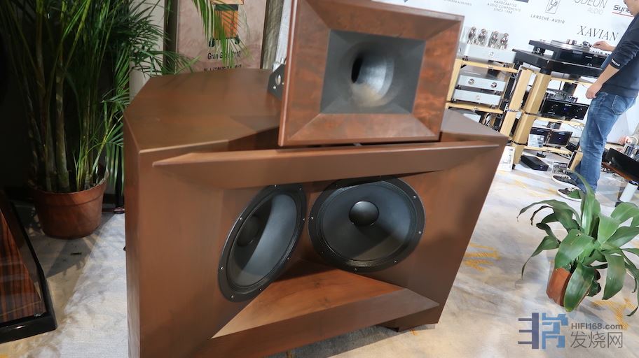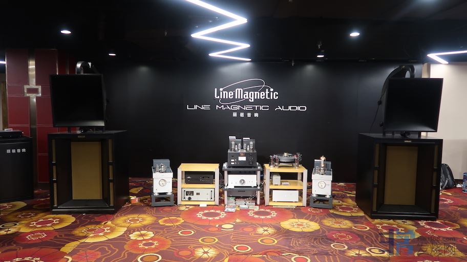 今年广州音展中国大酒店新开辟了地下负一层的展区,偌大的负一层将会有多少品牌在这里呢?Only one。放眼望去只有丽磁音响(佛山丽磁+珠海丽磁)。但就这一个国产胆机品牌。在庞大的负一层空间里几乎建起了个电子管扩大机博物馆。各类型的电子管机器组成了强大的阵列群。不同板块搭配不同的后端音箱,以大口径号角为主。声音方面,由于负一层大平层的相互干扰,说实话无法得出准确清楚的判断。不过以以往丽磁展房的声音表现而言,水准都是相当不错的。