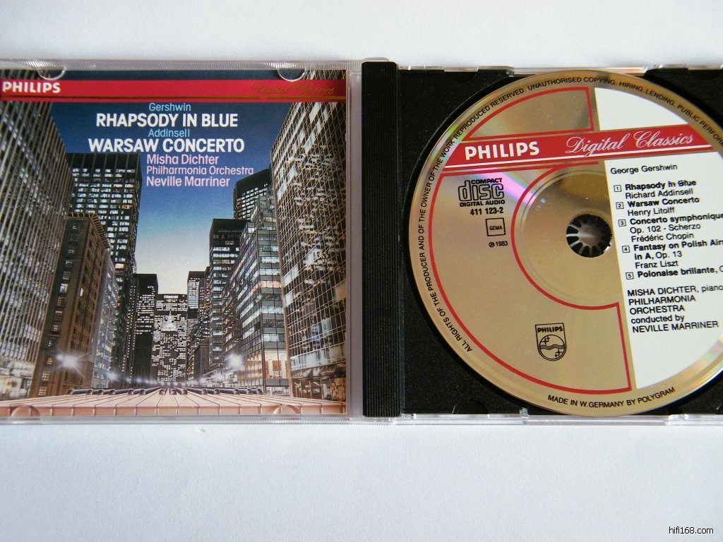 (2)格什温蓝色狂想曲、阿丁赛尔华沙协奏曲等,马里纳指挥爱乐乐团,迪西特钢琴,德版满银圈,播放浅痕,90