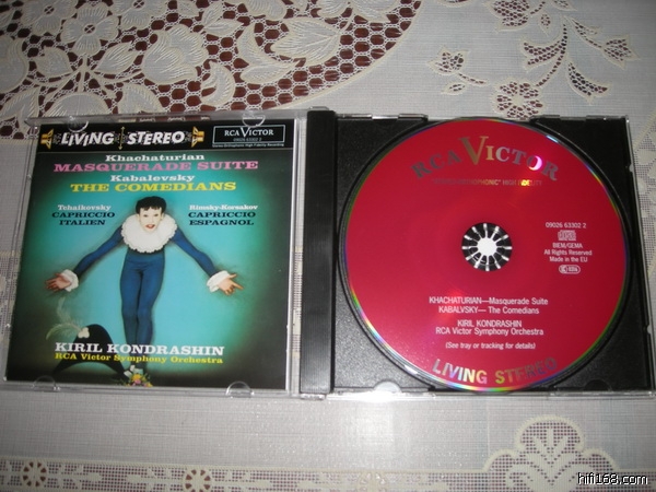 康德拉辛,恰恰图良《化妆舞会》组曲、卡巴列夫斯基《小丑》、柴科夫斯基 《意大利随想曲》、里姆斯基《西班牙随想曲》,欧版SONOPRESS,有IFPI,强光下些许痕迹,播放完美流畅。130元