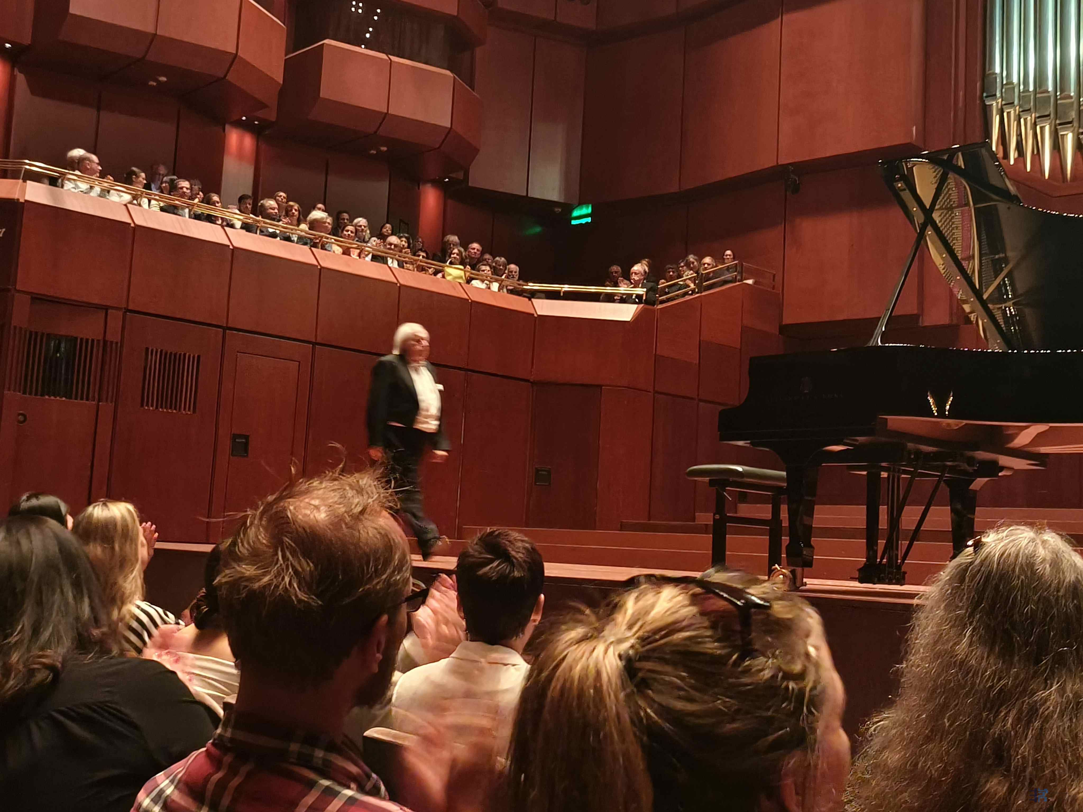 索神的返场曲一般有六首曲目,长度差不多等于又一个半场。乐迷们默契的以热情的掌声将索神的六首加演曲目一一引出,既有肖邦的玛祖卡,又有巴赫的杰作,还有拉莫的野人之舞Les Sauvages。前排的观众们更是起立致意,虔诚的表达着无限的敬仰之情。
