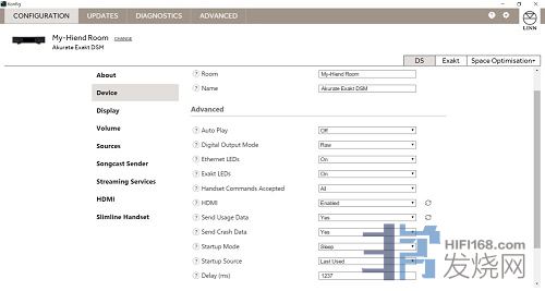 安装连上线后,在DS的部分可以看见串流播放机的信息和一些设定,我已经将空间名称改成My-Hiend Room,名称下方有器材名称,也可更改,预设为显示型号。如果不只一部器材可在CHANGE的地方更换。