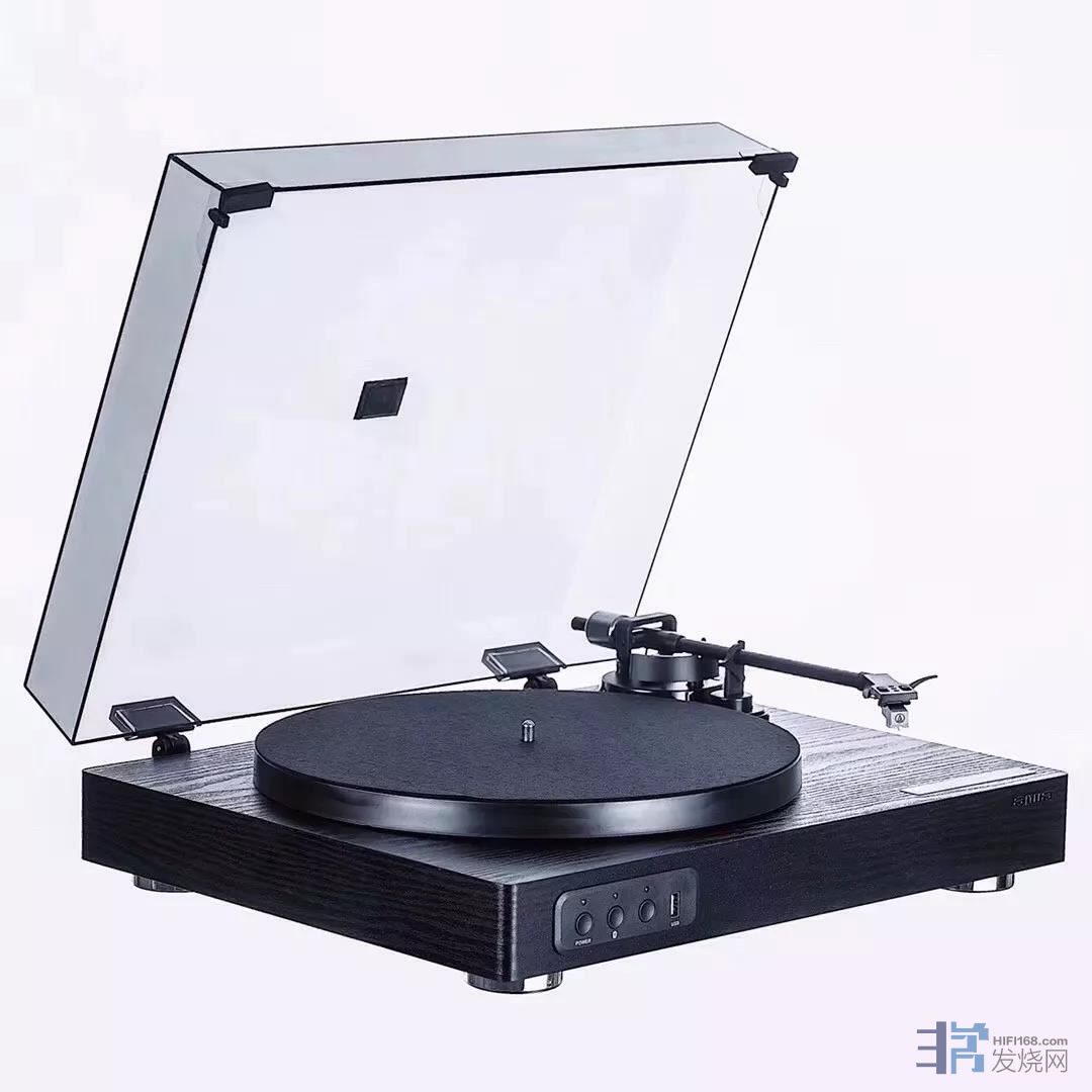 APX-BUE100内建唱头放大器,唱盘可提供33又1/3与45转两种转速,放下唱臂就可以播放音乐;另外可搭配预附的透明防尘罩可减少外部干扰如扬声器音压、落尘等干扰。