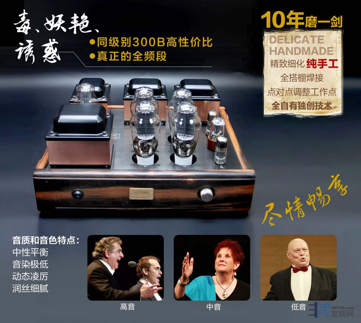 顶级HiFi就是毒药,动人心魄的音质音色够毒才够满足感。够毒,意味着功夫够深,调试不是一点时间一点精力的事,而是不断推翻重来,追求极致的结果。十年磨一剑,调试出一种毒药,让你一接触就爱上她。毒、妖艳、诱惑,她尽情给你想要的感觉,一种从听觉转化到视觉,再到体觉,还有幻觉。顶级HiFi一旦响起,煲机的过程就是让你放下世间的现实。世间的一切都是假的,只有你在HiFi音乐的空间里是真实的。你慢慢聆听她给你讲述的故事,你慢慢体会她内心的情怀,你慢慢认识她与你的缘分,你慢慢融入了她的灵魂。你希望她给你带来什么快乐,她都会满足。