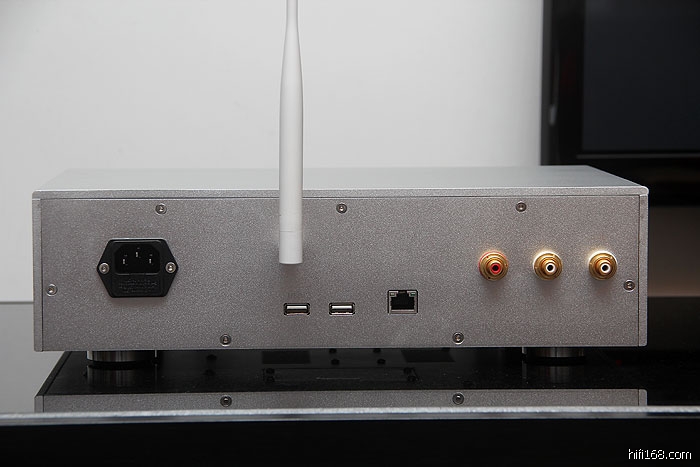 Mbox的背板非常简洁,就两个USB接口,一个网线口,模拟输出和同轴数字输出。