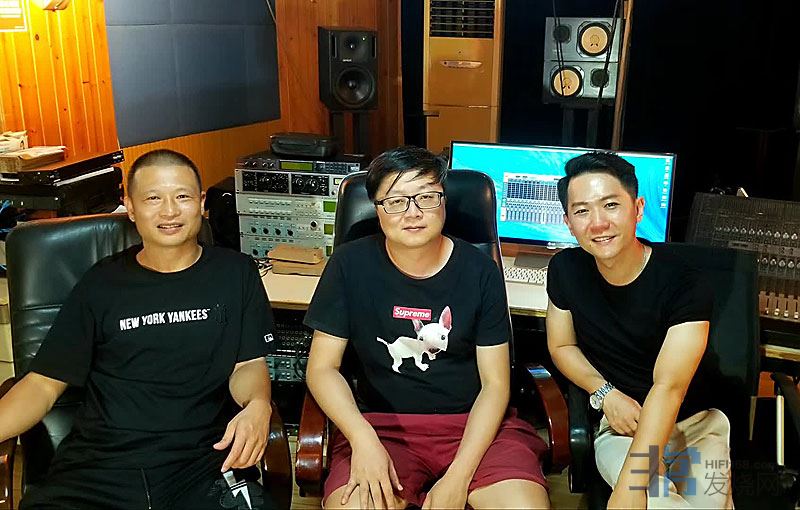 录音过程的合照:制作人蔡杰雄先生(左),音乐总监谢可老师(中)。