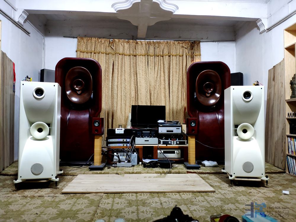 大号角的声音怎么说呢。首先是没有任何的压迫感(其实李老的几对号角都有同样的声音特性),听感上是偏舒适的,你都可以边听边做点啥而不会有太多感觉,我不知道这是好还是不好。不过,虽然口径很大,但低频并不好,虽然并不是没有量,也不是没有下潜,而是质感不够,速度很慢,量感略过多的感觉,总之低频解析肯定是不够的。高频大号角延伸似乎并不理想,有些偏暗。不过,它的中频倒是相当好听,非常粘稠的中频质感,听人声真的非常舒服。