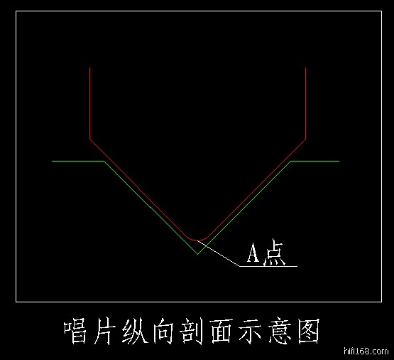 1、如下图所示,唱片的坑纹剖面是呈45度角,唱针也是呈45度角,关键的关键在于唱针A点实际上是不可能呈45度尖角的,只能呈圆角,所以不同的唱针也就会有一定差距了,针磨得越好,这个角就越尖,45度也就越标准;