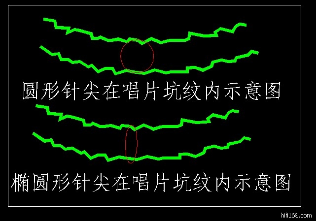 2、圆形针尖是最常见的针尖,但由于其与唱片沟纹接触面过大,比较细小的一些沟纹就不能深入读取了,椭圆形针尖比圆形针尖更能深入读取信息,故听感更加细腻;