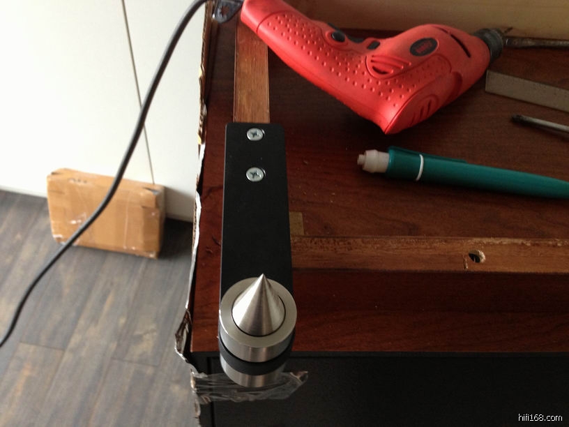 我的箱子也不小,大概50公斤一个吧,花岗岩是60cmx50cm见方,10cm厚的,脚钉是灵敏工作室的碳钢脚钉,效果不错,仅供老兄参考。