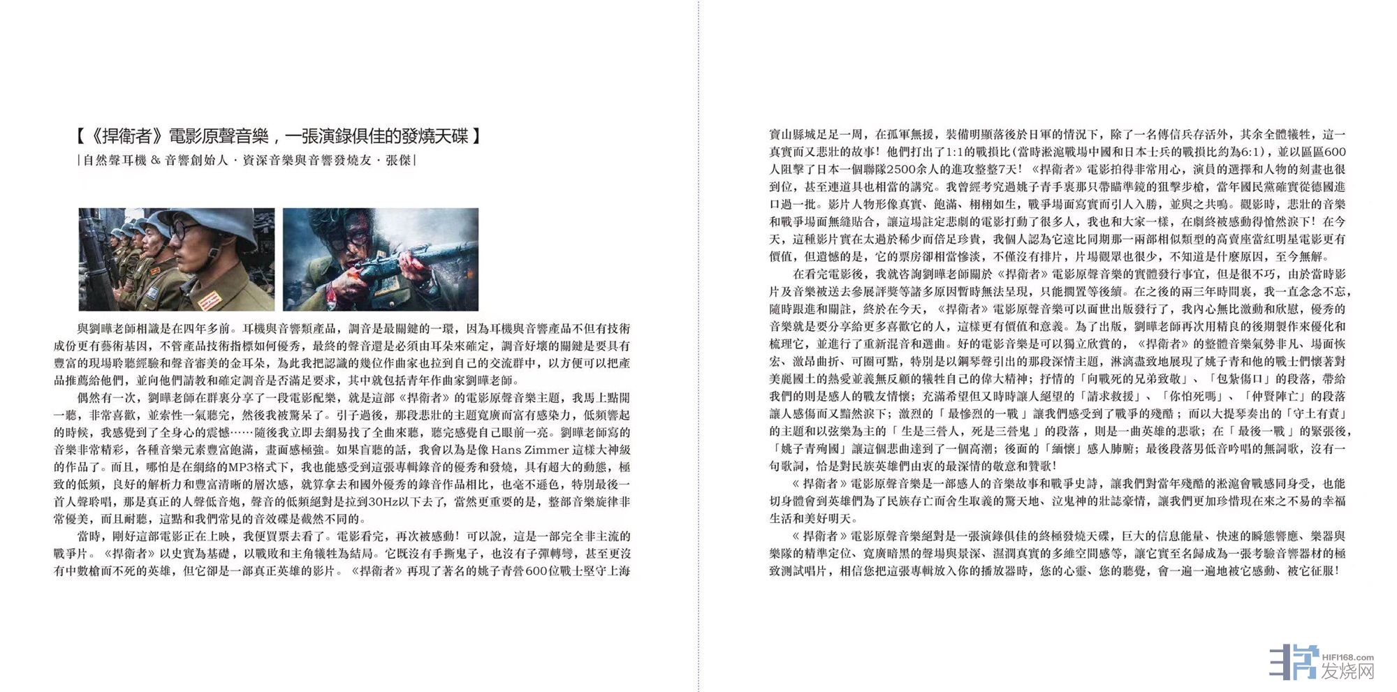 另外,我可以提供四张捍卫者的原声唱片做为奖品,这张由刘晔老师配乐的电影音乐唱片音乐感人、录音发烧,非常适合烧友们拿来试音用(音量要注意,别开大了,烧箱了别来找我,哈哈)。它的推出在下也出了几分薄力,并为它写了序。希望大家喜欢国产原创优秀的音乐和录音专辑!