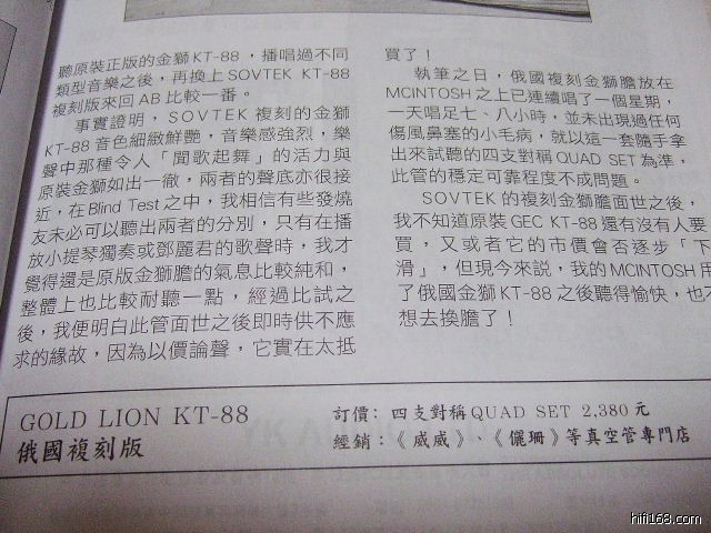 原帖由 dasan 于 2007-5-8 23:42:00 发表谢谢楼上几位经验之谈对KT88有什么推荐?