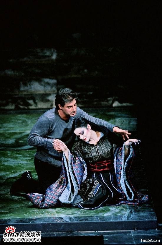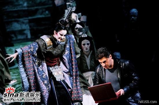 回到正题,在这个以古代中国为故事背景的歌剧中,竟然看到了现代的服饰:皮夹克;现代的通讯工具:手机;现代的查询工具:笔记本电脑;现代的布景:上海外滩的夜景等等一系列略显不太适宜的现代化元素。在我看来似乎并未给这场演出加多少分。也许你会说我老土、跟不上时代发展的潮流,但我想说在一个古典音乐普及程度还很低的城市中进行演出时,更需要一个原汁原味的作品,而不是一个被刻意改变了的。我们已经请到了西蒙-拉特尔、杨松斯、梅塔、穆特、马友友等一些世界上极为著名的古典音乐的传承者们来为我们上“古典音乐课”,但我们的成绩如何——大家都知道,同一些问题一再出现:不迟到、不随便摄影、不在不适当的时候鼓掌等等;弄得我们都很尴尬、惭愧,老师也很不高兴。音乐会已是如此,更何况是对于我们还比较陌生的歌剧呢?