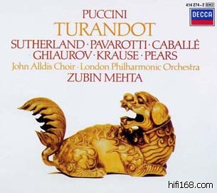 这是该剧历史上最豪华也是流传最广的版本,饰演男女主人公的琼•萨瑟兰与路奇安诺•帕瓦罗第,堪称20世纪最具天赋的歌剧艺术家,出演这部歌剧堪称旷世组合,加上梅塔指挥伦敦爱乐,无疑是“图兰朵特”的最佳版本。威尔金森的金牌录音,也可说是这一时期的最高典范。