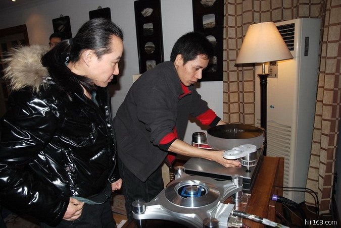 图为谢先生对转盘精心调试