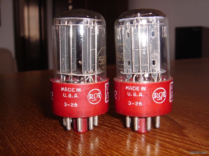 50年代军规53年第26周产,同期同批黑霉屏RCA5692一对,成色新净见实图,测试完好。价格2500元