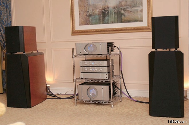 由于采用承载功率极高而灵敏度达97至98dB的驱动单元,平衡式单端纯A类放大器因此可大派用场。低音以Pass Labs的Aleph X功率放大器驱动,充分发挥已取得美国专利的Aleph系列单端A类放大与X系列超对称线路所具备低交越失真优点,温厚、甜美、细致的特质与莫大的动态对比得以巧妙结合。中低音、中音及高音放大器则沿用传统Aleph线路,取其飘逸的高音域与精确的结像力。供电部分总电容量达240,000μF,各路功率放大器输入灵敏度可独立调节,幅度为 +/- 3dB。前障板,箱面与底座以花岗石加固,波浪面侧板以九层木皮真空压成,彻底消除箱身谐震。