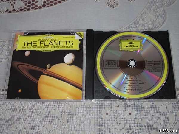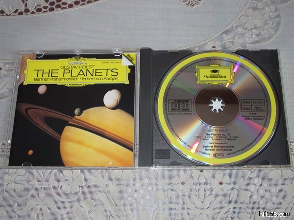 卡拉扬指挥霍尔斯特行星组曲,小册有被小半圆固定痕迹,法国PDO全银圈银边,强光下极轻微浅痕,近乎完美如新。80元