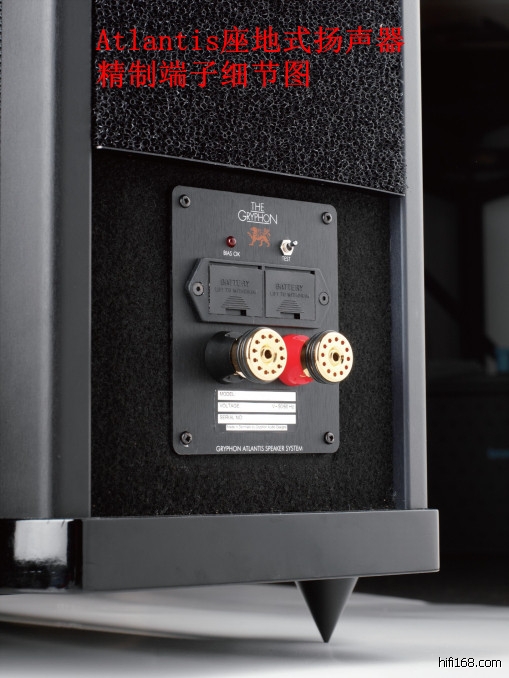 先从单元进入,我了解到Atlantis采用直径30mm的Accuton陶瓷高音单体,这可是Gryphon喇叭第一次采用这种单体,之前的Poseidon和Trident都是采用Ring Radiator尖鼻子高音单体。至于二个5寸中音单体与8寸低音单体,都是与Poseiden、Trident一样的材料,都是统一向丹麦喇叭厂定制的。我记忆中,Gryphon的几对喇叭的中音单体都是选择采用5寸、而低音单体喜欢采用8寸,似乎其它再大的尺寸的低音单体就没见出现过。带着这个问题,我向有关的人员了解,原来是Gryphon认为超过8寸的低音单体不仅本身物理特性很难做到非常理想,特别是在驱动过程出现不易控制的情况,因此,他采用多个的低音单体来实现大尺寸低音的单体效果。我个人认为这是没个设计师对于单体的了解和掌握到的技术而考虑的,这里面存在个人的技术理念的意图。像Rockport的Arrakis却采用二个15寸低音单体,他们自然也有它的道理。所以,音响设计有很多是殊途同归,同时又各出奇招的。说直接点,就是每种设计都有自己孰重孰轻的考量。在结构上,我了解到的Atlantis的箱体采用MDF制成,低音箱室与中、高音箱是分离,设计有低音反射,箱体内有精巧的补强隔板,还填充了羊毛与人造纤维。外观上也与它上两班的大哥、二哥是差不多的,同时可以提供多种不同饰板供用户定购选择,这样是满足过人的喜好并融入居家空间的需要。此外,在分音器的电容器上施加电池电流,让电容器一直保持导电状态,这种想法类似A类扩大机的作用,使得分音器中的电容器不会产生交越失真。分音器的设计则使用四阶分音,取其精准之特性。内部安装了电池提供持续偏压,降低分音器的音染,原厂强调,分音器使用电池偏压可明显提升音像形体、泛音光泽与整体音乐表现的和谐。虽然Atlantis尺寸看起来像是中型尺寸的落地喇叭,但份量却是惊人,118公分高的Atlantis,体重竟然高达85公斤。