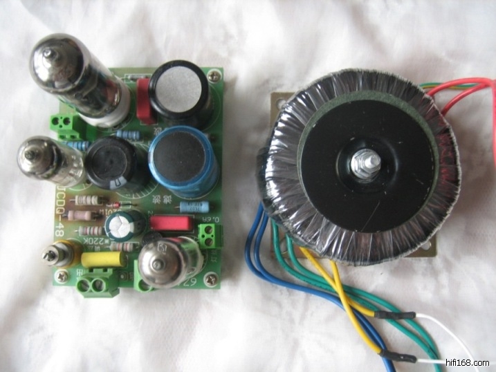 5.开机输出静音控制成品板一块。6.定制变压器四只。其中:B+供电配套变压器一只,灯丝供电配套变压器一只,音量控制配套变压器一只,开机输出静音配套变压器一只(直接焊接在电路板上)7.机箱一套;附开关和插座。