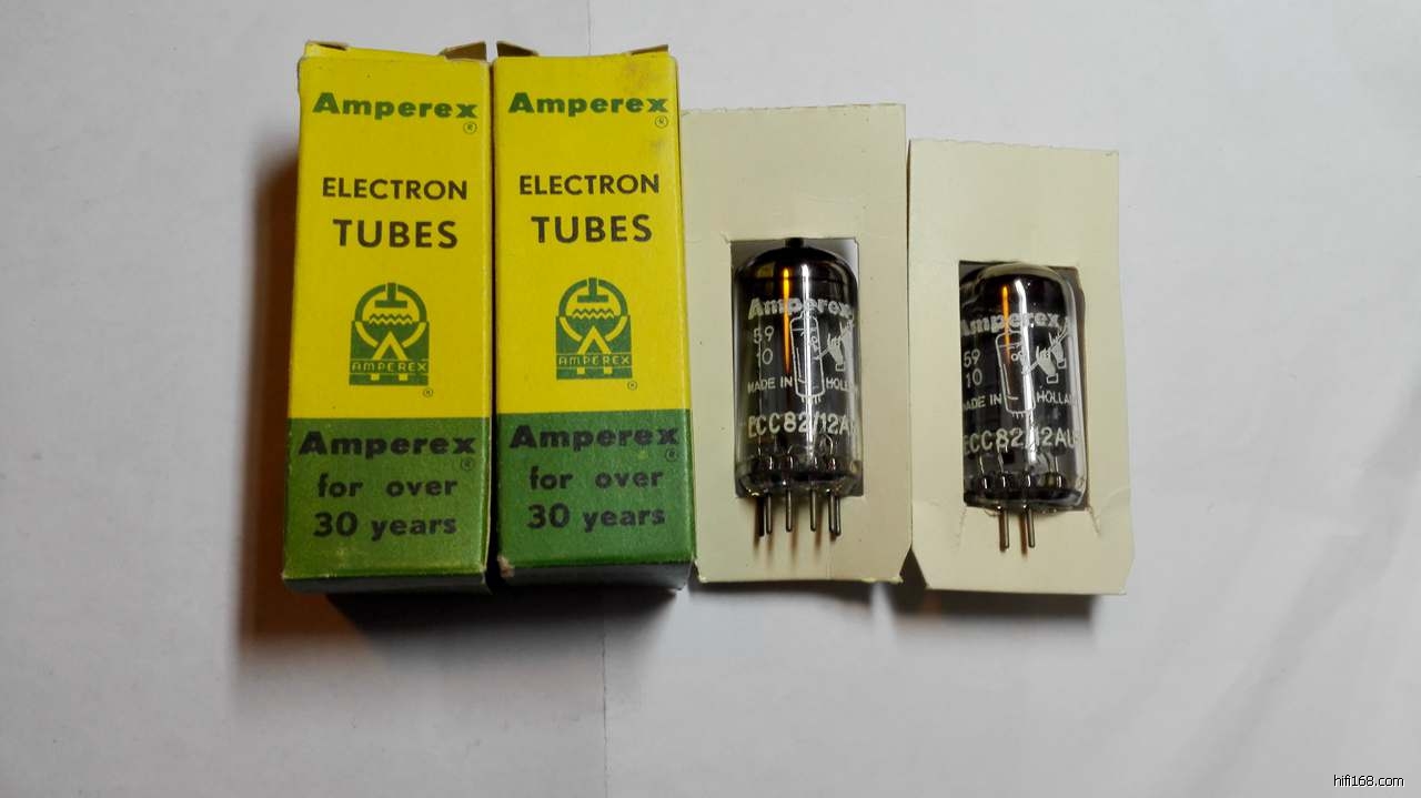全新原盒50年代荷兰Amperex吹喇叭ECC82/12AU7长屏D环一对