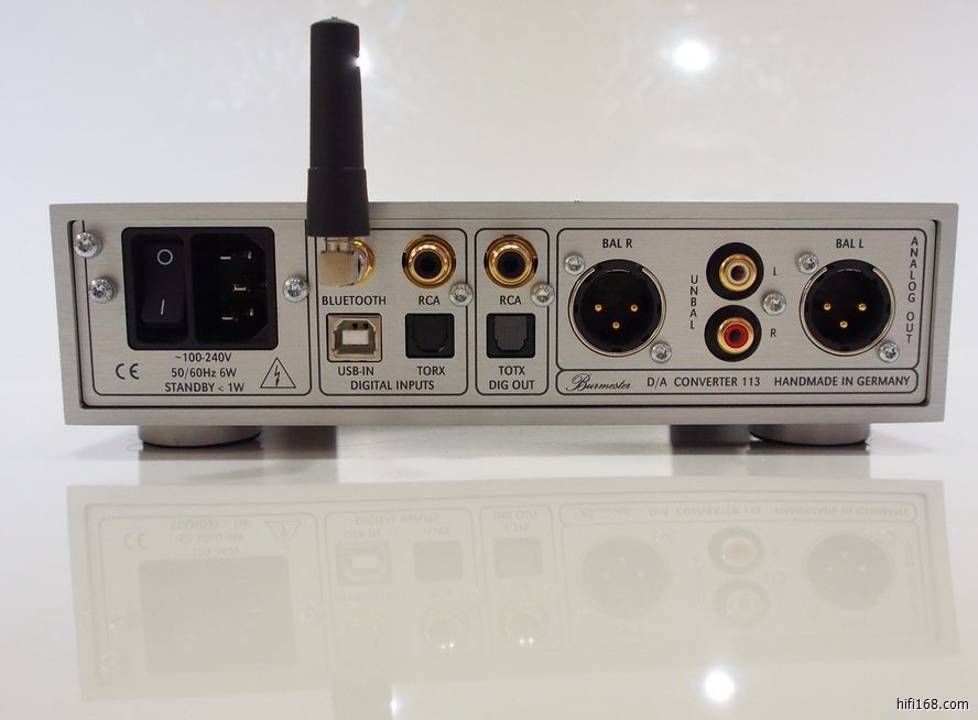 Burmester 113 是一款多功能的小型DAC,它不仅具备USB接口用于对应电脑,而且还具备蓝牙功能,可应对智能手机、平板电脑等移动设备。在设计上,113 DAC 应用了061、 069 和089 这三款CD 机上所用的MMI 多媒体传输界面技术,同时更提供数字重采样功能,最高可提升至192kHz! 在模拟放大部分中, 113 使用全直流模拟放大电路,而且放大电路的每一级之间都是直接交联设计,不但频宽广阔,而且速度响应也快。