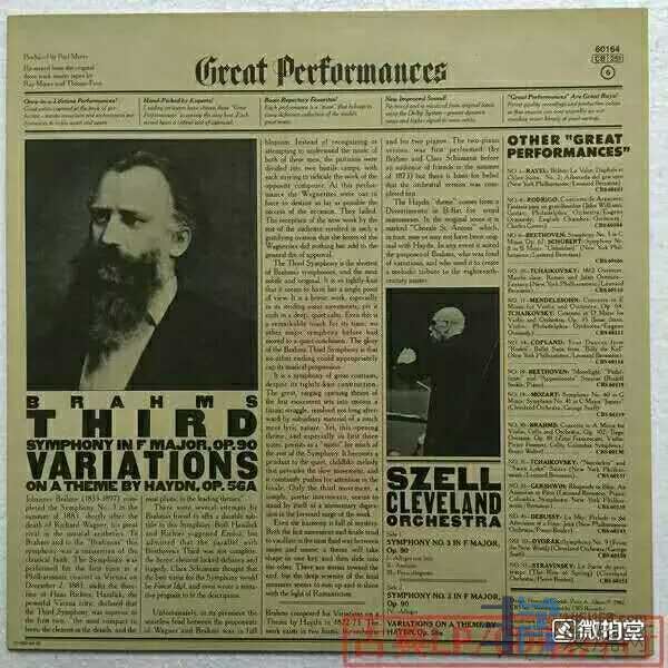 黑胶报纸版勃拉姆斯:第三交响曲、海顿主题变奏曲- 塞尔 品相NM 起拍价50,加价10