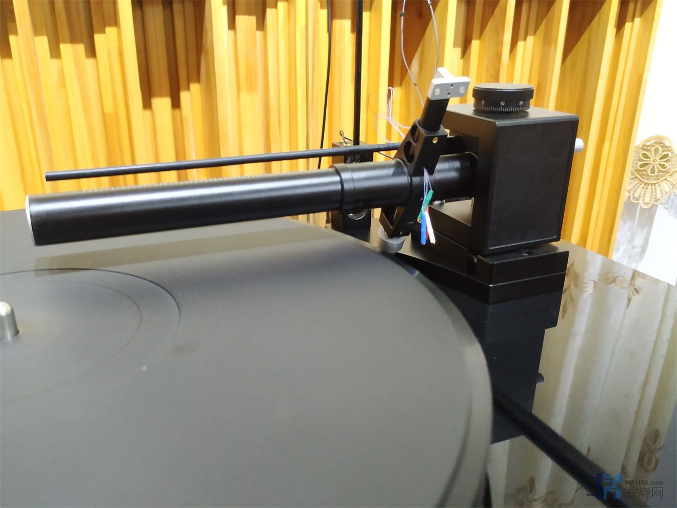 根据唱机原臂板尺寸参数定制了A181专用臂板安装唱臂: