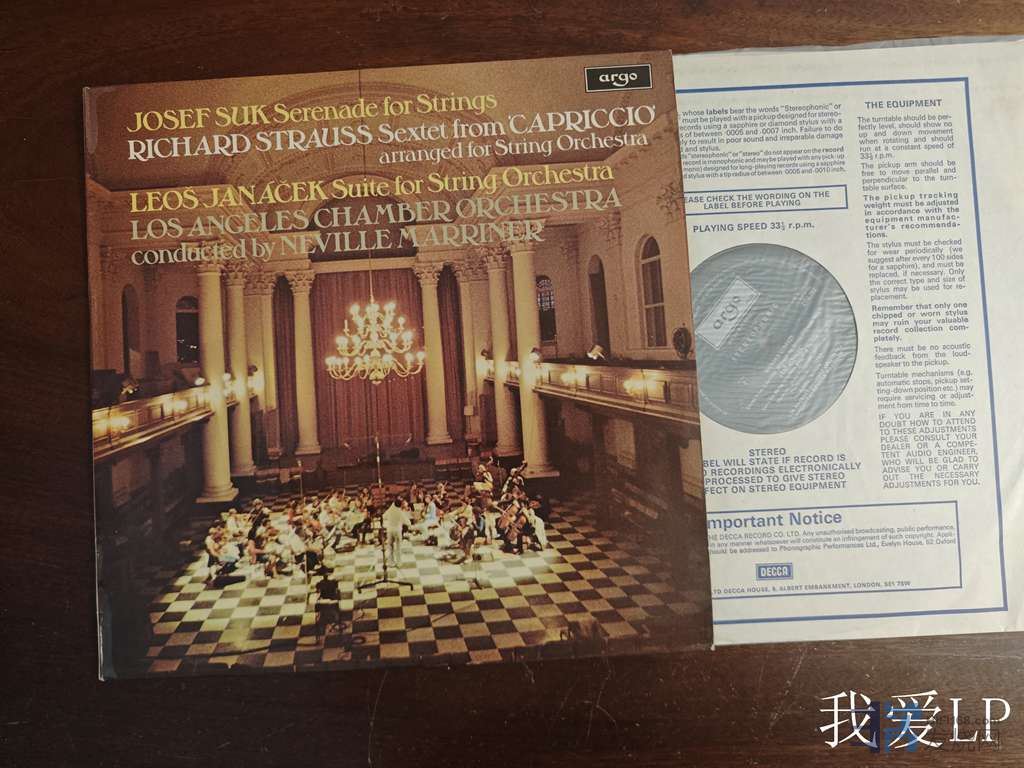 11124,苏克《弦乐小夜曲》,斯特劳斯《来自随想曲的六重奏》,杨切纳克《弦乐组曲》3首优美弦乐小品,马列纳指挥洛杉矶室乐团。Argo英国头版,NM,230