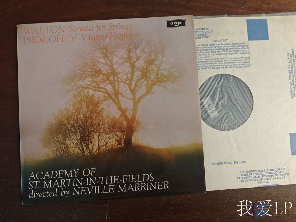 11125,沃尔顿《弦乐奏鸣曲》,普罗科菲耶夫《逃亡者的幻觉》,马列纳指挥圣马田乐团。2首稍冷门但都非常优美的作品!Argo英国头版,NM,230