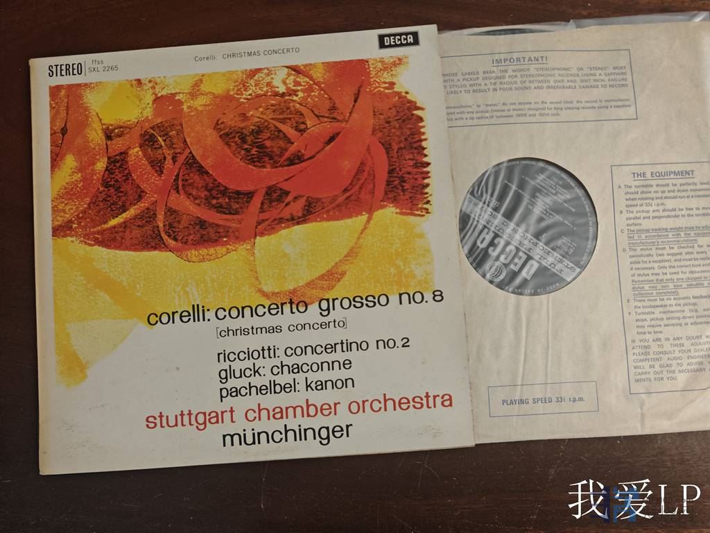 11133,科莱里《第8号大协奏曲(圣诞协奏曲)》,里乔蒂《第2协奏曲》,格鲁克《夏空》,帕赫贝尔《卡农》4首精美弦乐小品,慕辛格指挥斯图加特室乐团。Decca英国宽标带沟ED2,NM-/NM(如新!仅A面强光下勉强可见极其虚弱擦痕),260