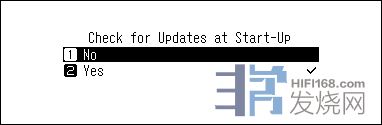 3、按上/下按钮,然后选择“启动时检查更新”,然后按菜单/进入按钮。