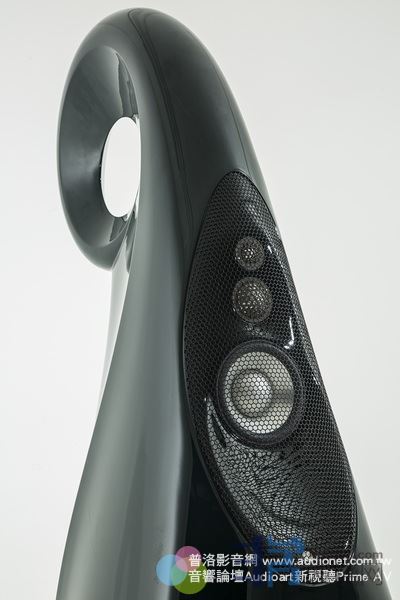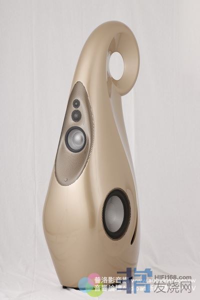 而Giya当然不能如法泡制,于是改为一个酪梨型的庞大箱体,这个箱体遵从由大渐小的原则,底下大,上面一直缩小,一直到最顶端就形成一个后卷的圆形。这样的造型设计非常高明,一方面避免了侵犯鹦鹉螺的专利造型,另一方面还改良了低音的表现能力。怎么改良?