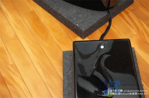 而Giya同样的在这三个单元后面接了三根管子,但是这三根管子不再外露,而是包在低音箱体里面,从背面可以看到三个大螺丝,可知这三根管子是以这三个大螺丝固定在里面的。而低音箱体的做法呢?鹦鹉螺是在低音单元后面接一条如鹦鹉螺般的长管,利用这条卷起来的长管慢慢吸收低音单元的背波。