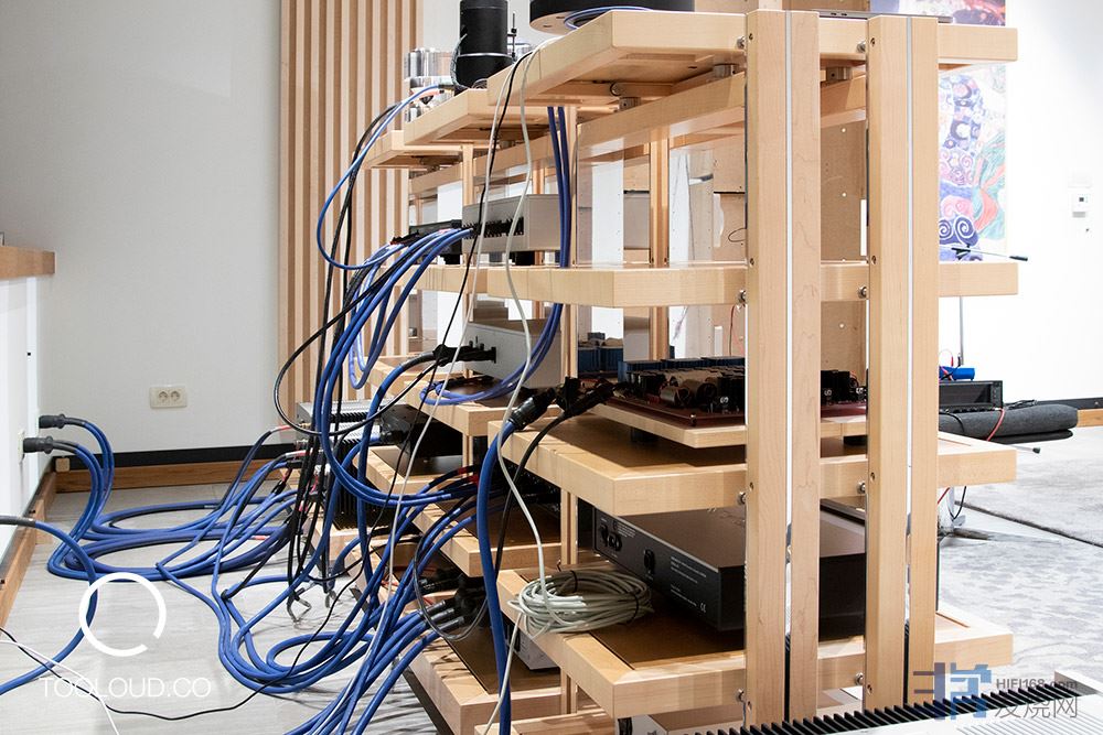 约40平方米的听音室内,有一个用于演示以及测试的HI-END系统。其中的器材包括:Karan Acoustics KAM 2000 单声道后级放大器,新的 30 周年 Master Collection LINEa 前置放大器,KA-PH-Reference带外置电源的唱头放大器,带 Stogi 参考唱臂和 Benz Micro LP-S 旗舰MC唱头的 Kuzma XL2 黑胶唱盘,Metronome Technologie Kalista 带外置电源的CD 转盘、Karan Acoustics DAC解码器、Burmester 948 电源处理器、来自美国Cardas顶级系列的完整线材和自制扬声器。所有电子设备都放置在 Finite Elements 音频架子上。