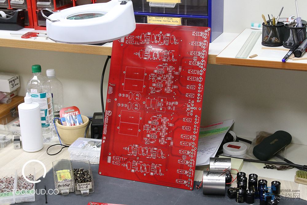 所有设备都可以说是手工制作的,除了现成的订购零件,例如CNC加工的铝制外壳零件,变压器和电容器也根据规定的规格订造。我从谈话中了解到,如此加工精美的铝制外壳来自瑞士的顶级供应商。