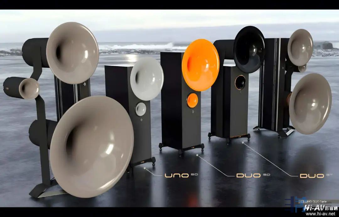 来看看Avangarde G3第三代制品的合照,最外侧是旗舰TRIO三号角喇叭,裡面由左至右分别为Uno SD(本文主角)、Duo SDDuo GT