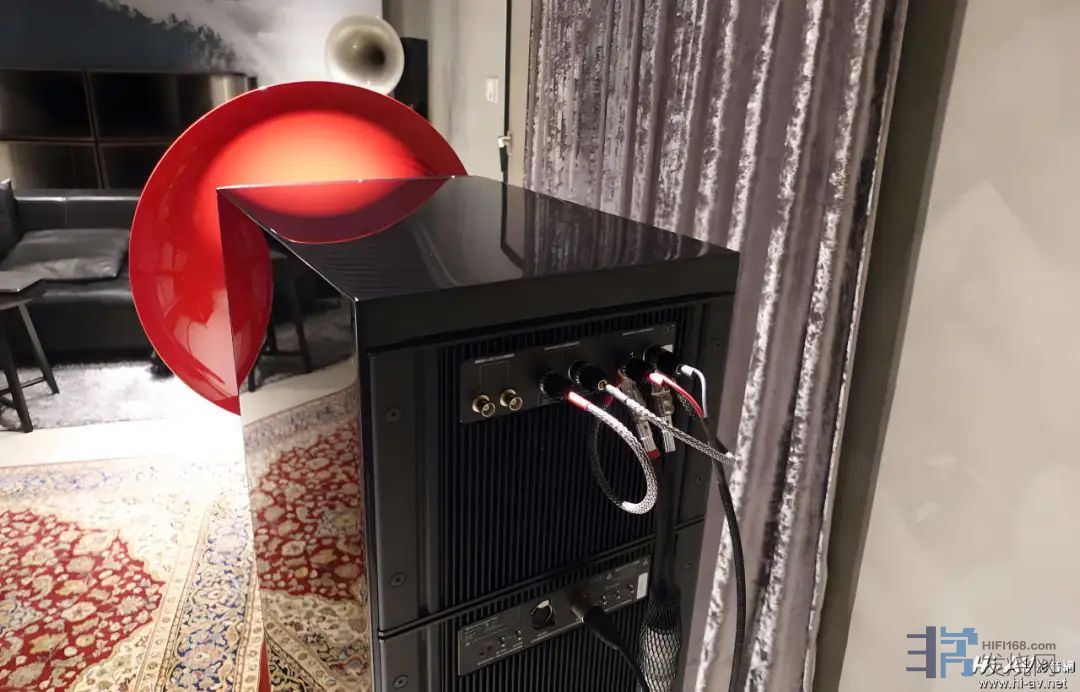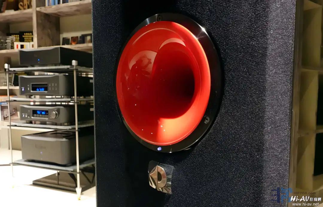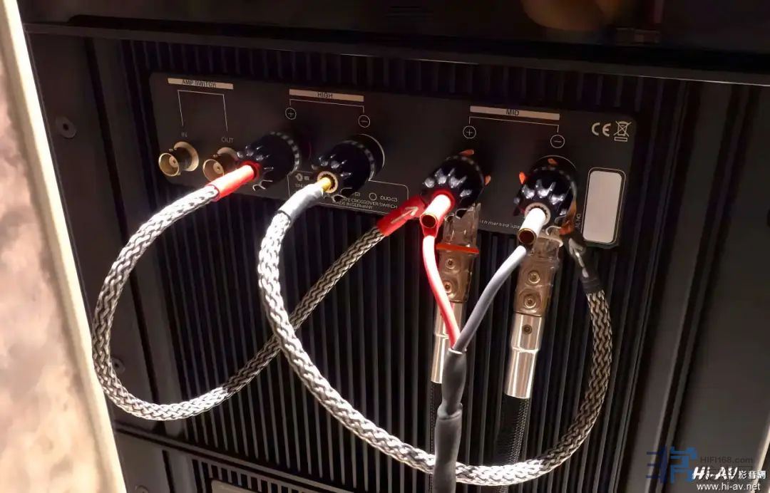 从后级接出的喇叭线送至“MID”中音号角的驱动器,再使用喇叭跳线连接至“HIGH”高音号角驱动器。对了,Avantgarde的中音部分完全没有被动式分音网路,中音号角驱动器雨后级直接相连,透过CDCControlled Dispersion Characteristic扩散特性控制)机械分音系统独特专利技术,来去除被动式分音器元件对中音频段发声的衰减与污染。