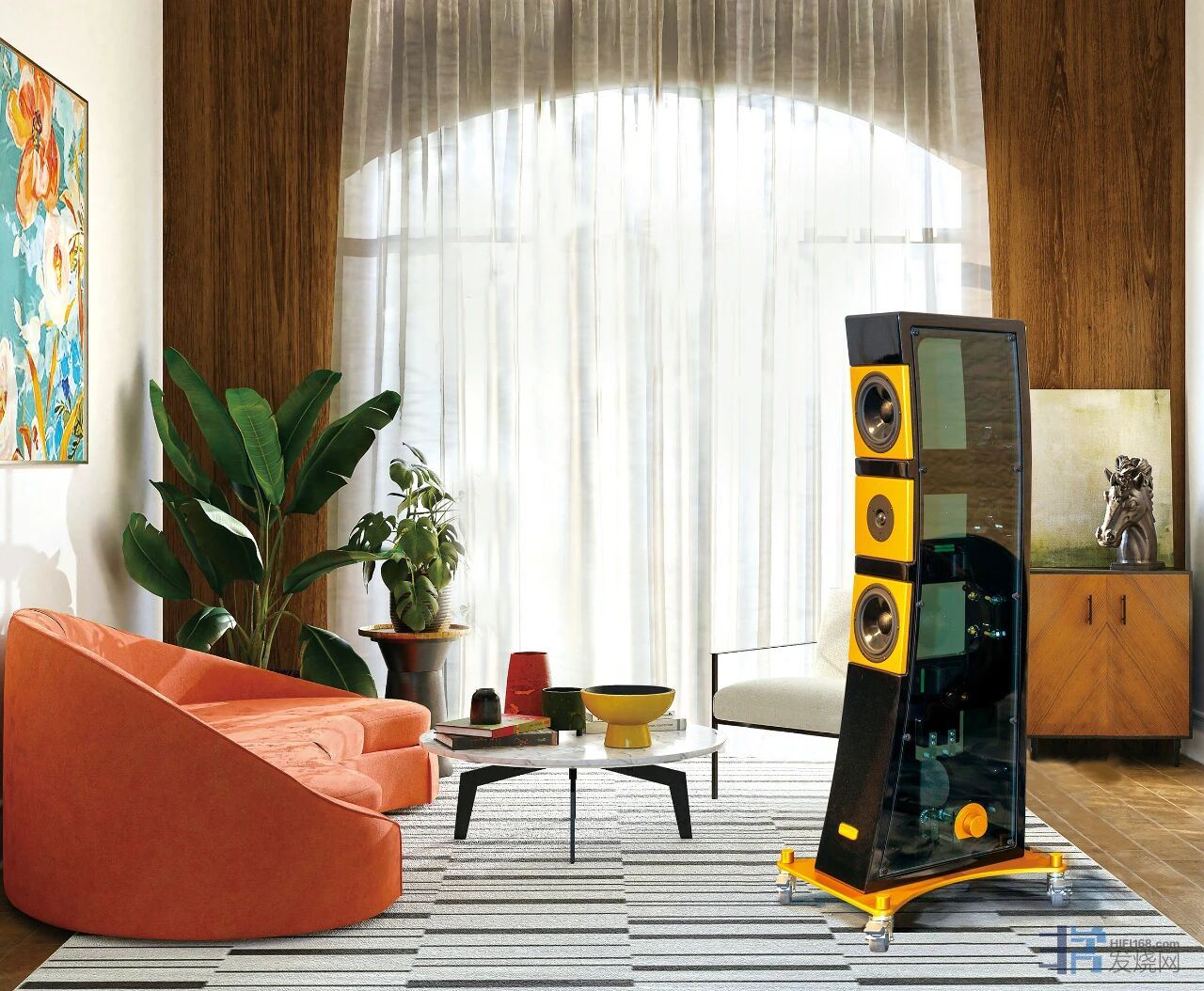 正如达·芬奇所言“美感完全建立在各部分之间的神圣比例关系上”,奥图美格(Atomica)旗舰Orchestra大鸣奏与次旗舰 OrchestraMini小鸣奏的箱体结构正是以比例与均衡为核心,为声音还原构建了稳如磐石的基础。 更令人惊叹的是其钢化玻璃侧板专利设计,这一打破行业偏见的创新,恰似文艺复兴时期艺术家对传统技法的突破。奥图美格通过特殊耦合技术化解玻璃易共振的声学缺陷,让钢化玻璃不仅成为独特的视觉符号(提供全透明、深色、不透明等个性化选择),更凭借出色的隔音性与抗腐蚀性,为单元发声营造无干扰的纯净环境。这种实木+玻璃的跨界组合,既是对阿尔倍蒂“美是内在本质与外在表现高度统一”的现代诠释,也让箱体在视觉与声学上实现双重和谐。当笔者见识到其独到的设计理念,奥图美格不仅拥有令人沉醉的音色,宽大的声音动态表现,更以雕塑般的造型,成为空间中的视觉与听觉焦点。听过其令人过目难忘的绝佳声音表现之后,内心直呼:“意大利第二次音响复兴到来了”!