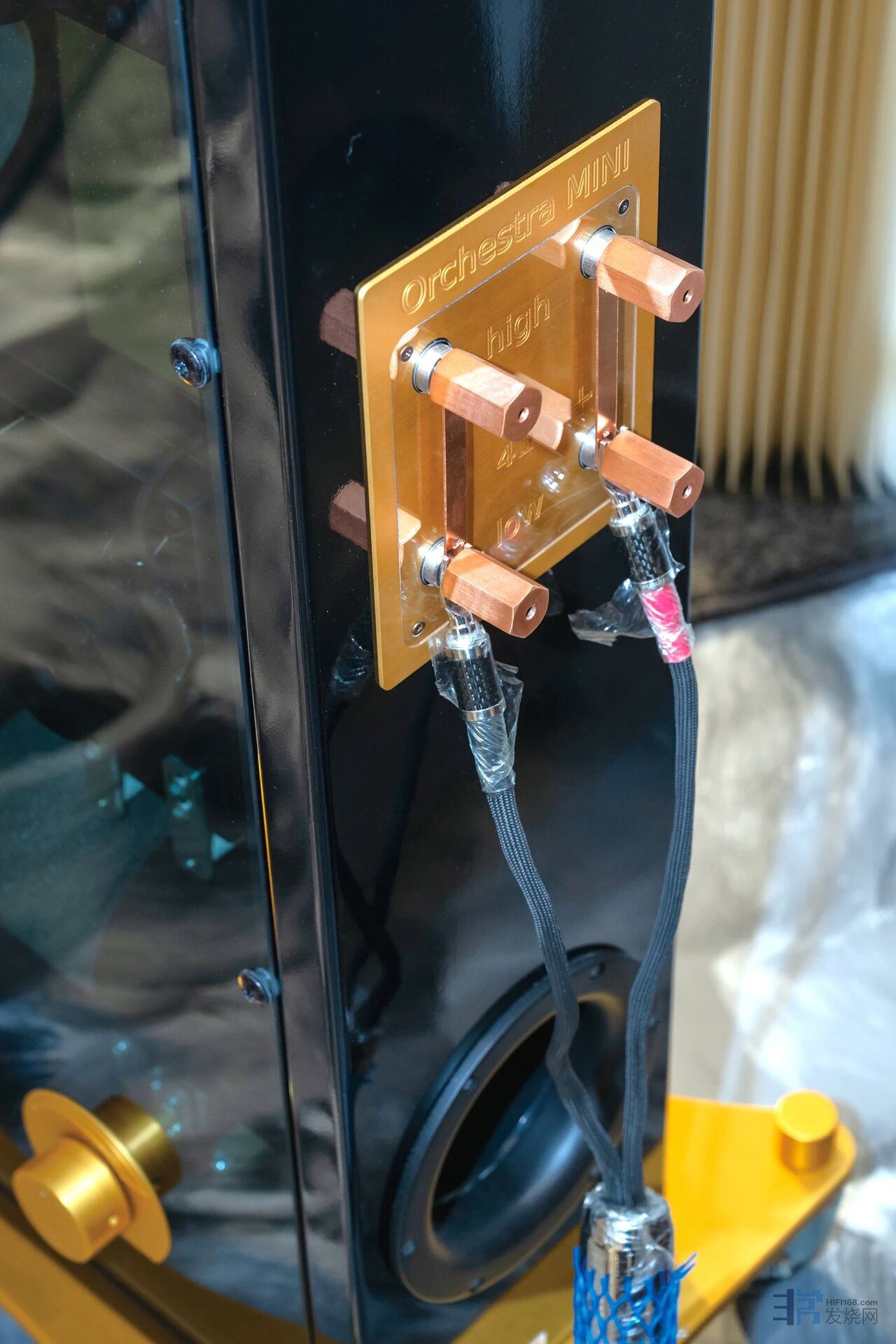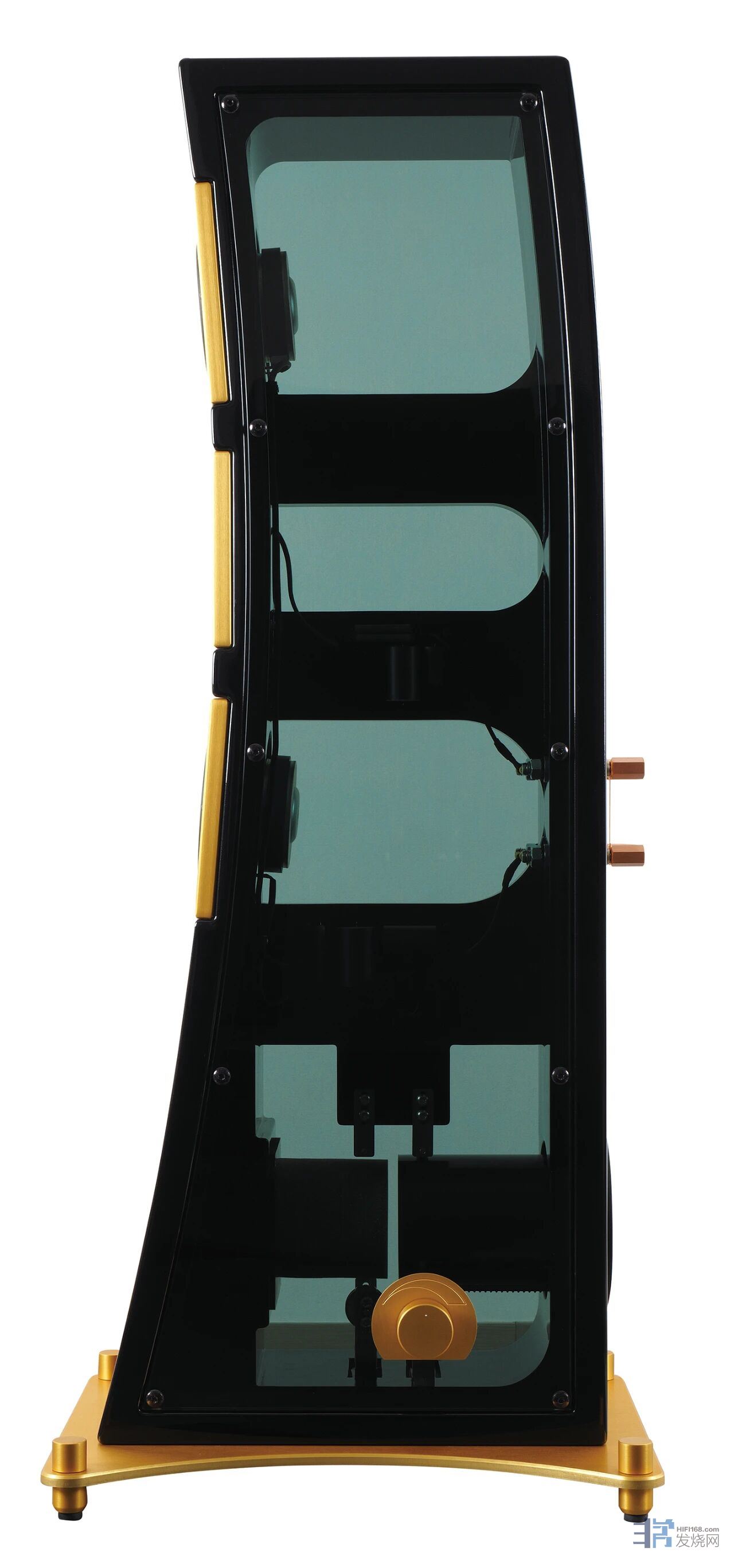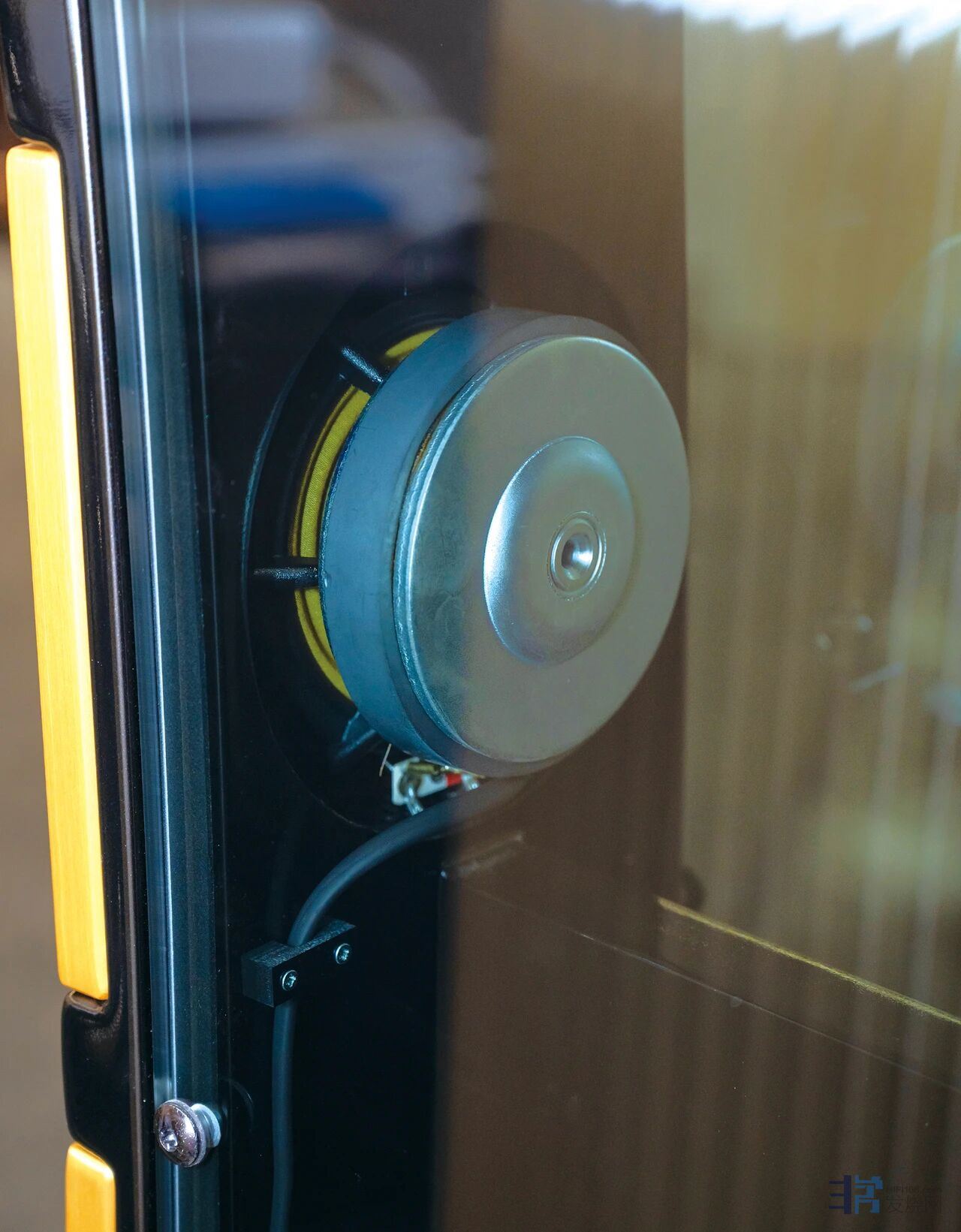 作为系统的发声终端,奥图美格Orchestra Mini小鸣奏与旗舰大鸣奏的基因相承,从开箱便展露无遗。也可以说现在的旗舰Orchestra大鸣奏是在小鸣奏的基础上加上两只低音与一只高音单元完善的。Orchestra Mini小鸣奏虽然是中小型箱体,单只75kg的重量,需要两人合力才能平稳安放,远超市面大多同体积中小型落地箱2-3倍的重量,使得喇叭单元有了更平稳的运行平台,同时喇叭的震动也被箱体所化解,当然,这种重量并非笨重的材质,要不然箱体底部放水泥抑制震动也不是不可行啊。真正好的声学箱体材料要有合适的刚性与柔韧性,奥图美格Orchestra Mini小鸣奏箱体的重量大多来自于其30mm高强度天然实木多层胶合板的一体化CNC铣削工艺,这种多层粘合结构既保留了木材的自然声学弹性,又通过高压层压技术彻底杜绝箱体谐振,这正是奥图美格坚守的“扎实箱体为声音之本”的设计哲学。还有一个重量来自于其更令人称奇的钢化玻璃侧板专利设计,打破了玻璃易共振不适合做音箱的行业偏见,通过特殊耦合技术化解玻璃声学缺陷。 在声学技术上,Orchestra Mini小鸣奏的与众不同的设计令人惊叹。其一,可自动调整的reflex专利技术,通过物理机械运动组件实时调节倒相孔长度,无需手动干预即可精准适配不同房间声学环境,让低频能量与空气振动完美匹配;其二,无任何吸音材料的内部设计,颠覆了行业依赖吸音棉抑制驻波的常规操作,仅靠箱体结构的精密计算与材料阻尼特性,便将多余驻波与“扑声”杂音彻底消除,让低频更纯净、下潜更深;其三,高级分频器配置,玻纤沉金PCB板、无氧铜空心电感、105℃耐高温大电容与铝壳电阻的组合,配合高温焊锡饱满焊接,确保分频点精准无漂移,让1英寸高音与两只6.5英寸中低音单元的衔接丝滑自然。