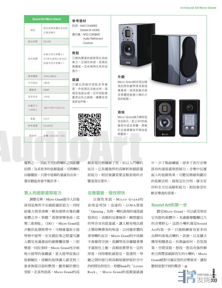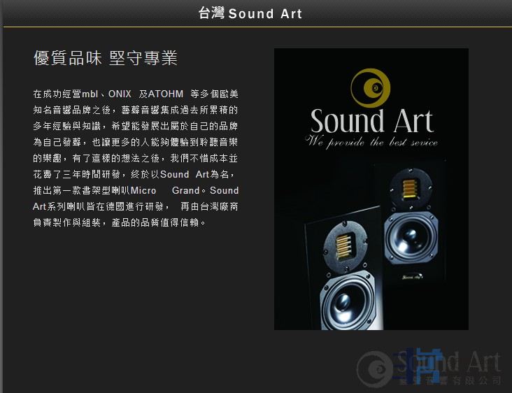 介绍:台湾艺声公司是一家集技术与实力一身的音响公司,在台湾和香港地区富有名气,一直拥有极高的声望,得益于多年来成功经营MBL、ONIX及ATOHM等多个欧美知名音响品牌的积极态度和良好信誉,艺声音响不仅积累了丰富经验与技术知识,更在近年开拓发展出属于自己的品牌,让艺声的音响产品也唱响到世界的发烧之列。说到开发资深品牌的音响产品,只要阅历相对广域的发烧友自然会发现,艺声音响确实已经推出产品稳步进军音响市场,其中首发的音箱产品就是以Sound Art为品牌的Micro Grand书架式音箱,鉴于艺声公司长期在台湾独家代理德国MBL的合作关系,因此在推出自己的产品时委请了德国资深的设计师完成。也就是说Sound Art品牌系列音箱均在德国进行研发、设计,再由台湾厂商负责制造及组装,无论是产品的品质或者是声音的重播表现,都值得肯定和信赖,难怪Micro Grand书架式音箱一经推出,即获得了业界内外的一致肯定。在我们触及Micro Grand音箱具有国际化制造工艺以及出众的声音再现能力时,不得不赞许艺声公司积极踏实的态度和严谨万门的精神;而其相对普众的身价,却又透视出艺声品牌诚恳的市场理念,也体现了艺声公司倡导“让更多的人能够体验到聆听音乐的乐趣”的发烧宗旨。