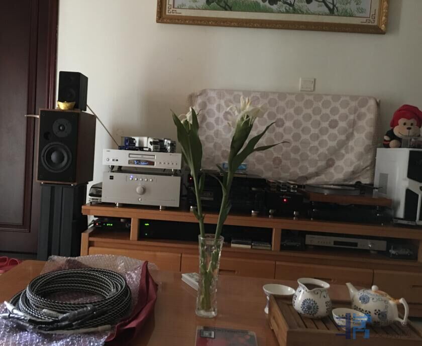 您的论坛短消息收到了,您的:器材:景丰Uds-1,声雅203GS,申士宝990+伊顿7-300(DIY小型落地箱)。目前线材古河入门line1,da-301