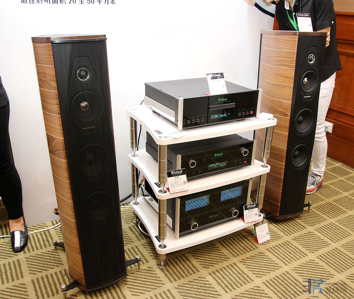 中国大酒店的逸致轩厅,泽森音响展出法国Triangle扬声器、英国CHORD。
