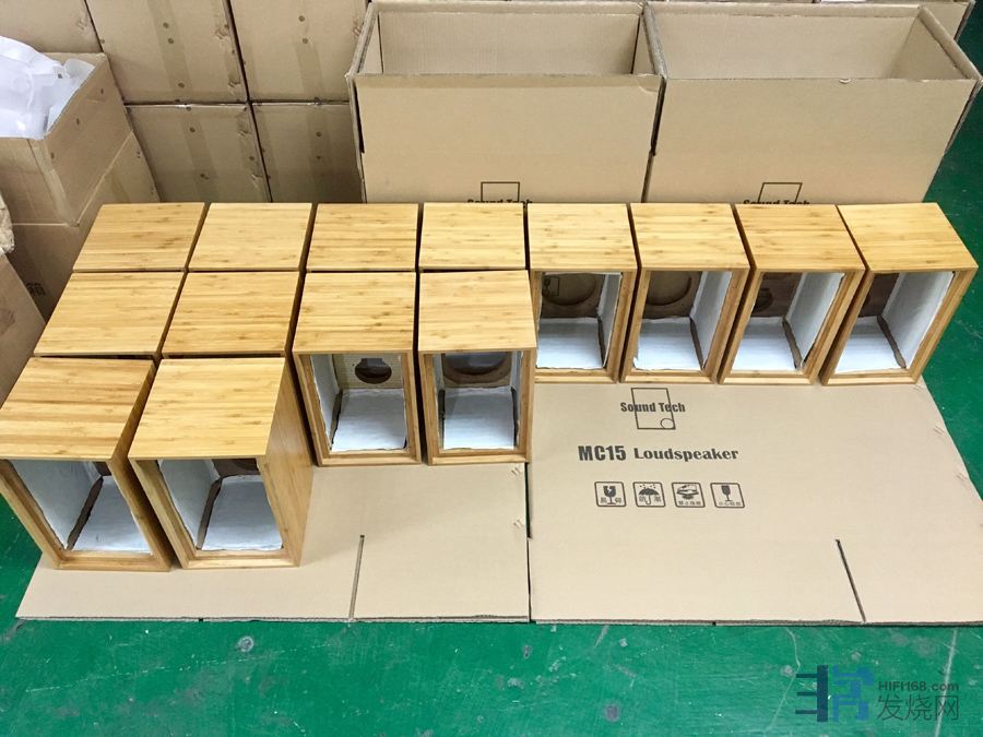 厂方消息高音低音喇叭单元经过24小时老化后测试配对后入箱,分频器也配对过,装箱后,进行一次初步的试音,接着再次测试配对,雕刻编号,最后设计者聆听一次,然后“圣诞版雕刻板”即将装箱