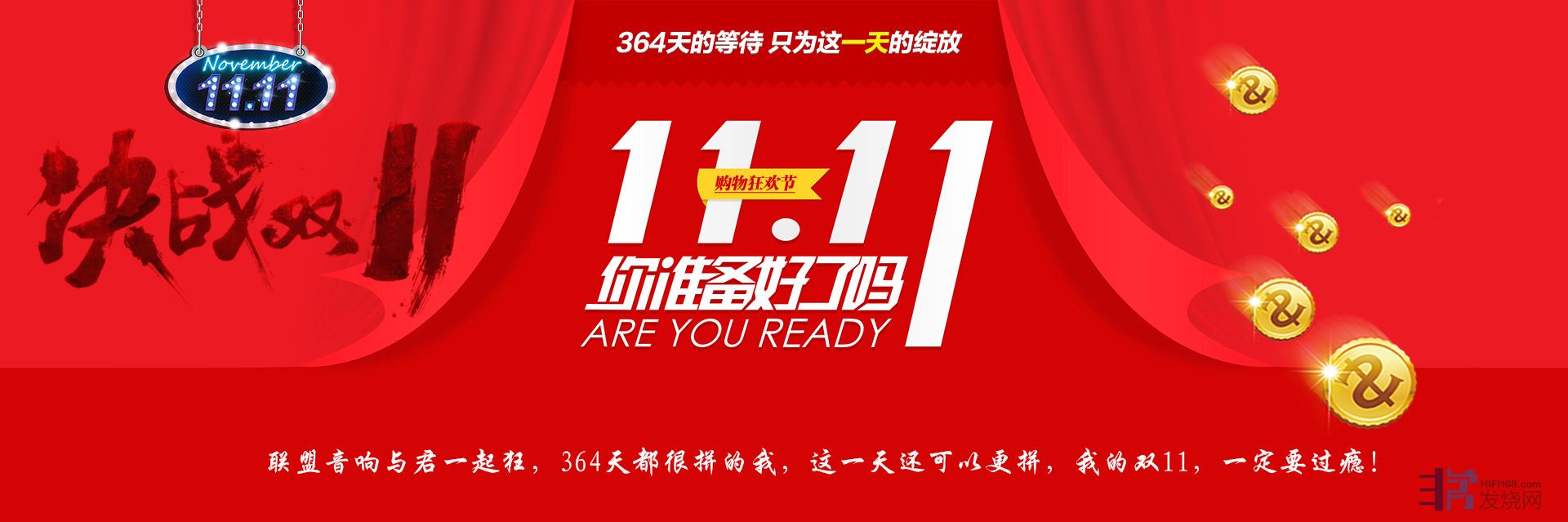 一年一度的双11又到了,按照联盟音响以往的风格,这个活动又要放血了!此次活动准备了一元秒杀,11.11元秒杀,111.1元秒杀,1111元秒杀,下单更是有优惠,甚至还有惊喜!